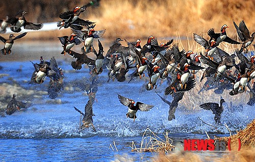 ★... 사진은 유영관씨의 원앙의 도약. 2013.11.11. (사진=환경부 제공)